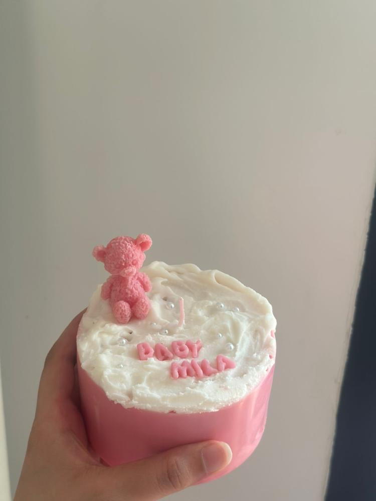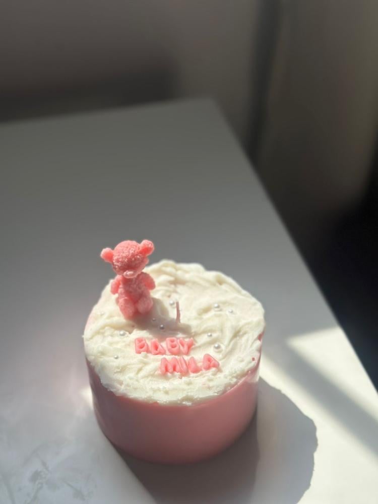شمعة بتصميم كيكة معطر تضيف لمسة أنيقة من الهدوء والراحة لبيتك.